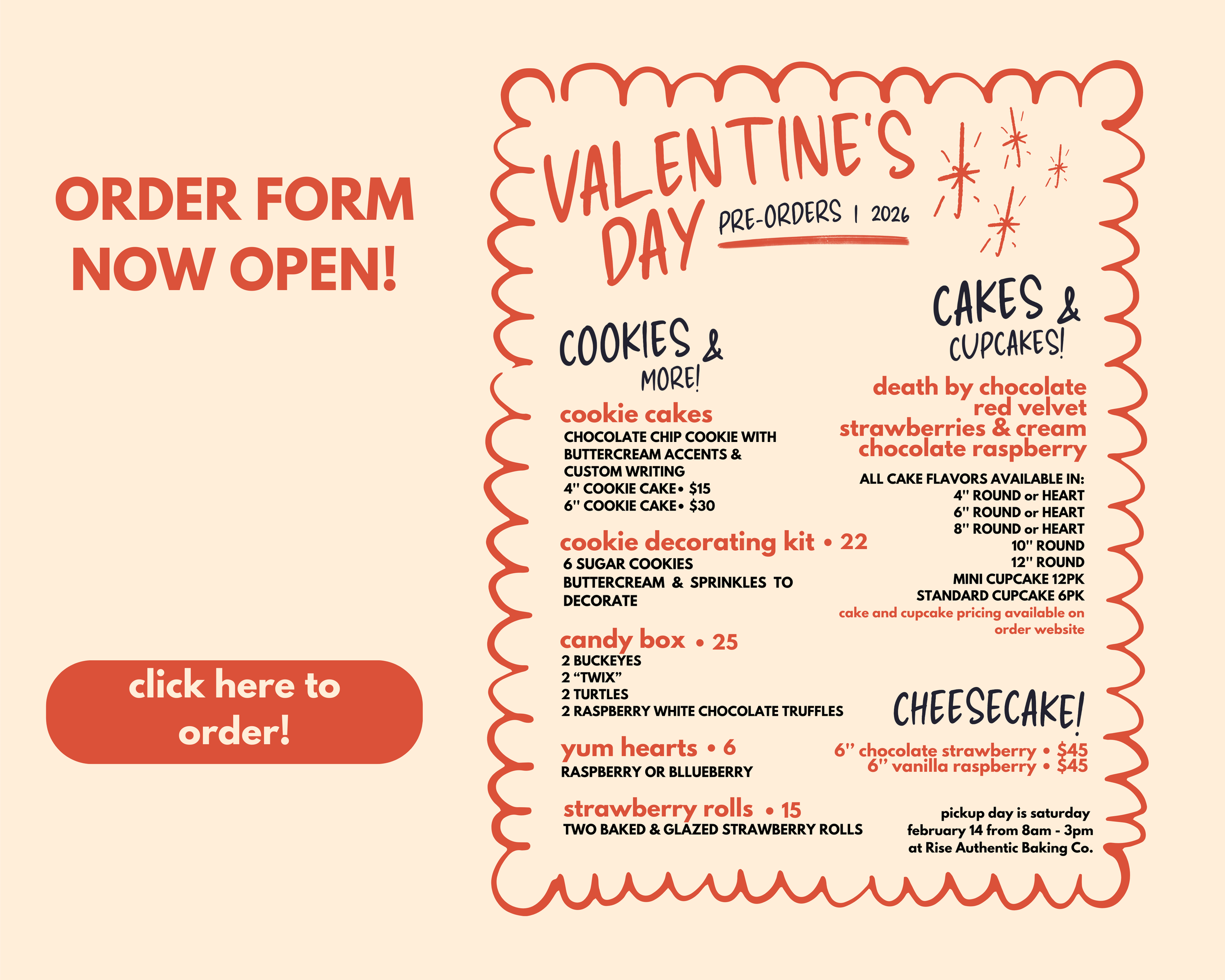 Every day, we post the flavors of the day on our instagram story! If you want to stay in the loop, give us a follow @riseauthenticbaking!